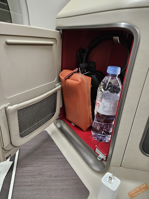 置物箱的部分也比長榮大了一些,已經放了500cc的水、耳機以及過夜包
